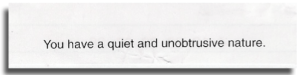 Here, then, is a look a year’s worth of fortune cookies that I’ve collected. What do they say about me? And what do they say about the largely unsung and unexamined art of fortune cookie fortune writing?