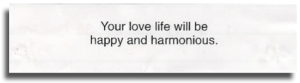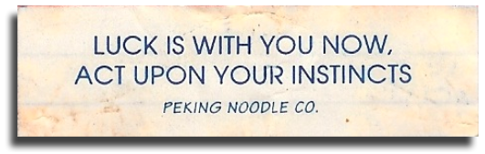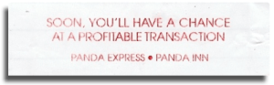 35 years later, I am a dedicated Chinese food fan, though I’m still not big on Cantonese. I prefer hot and spicy Schzechaun dishes — and my passion for Thai food is rivaled only by my blood-bond to my mom’s Italian menu. I eat Thai food at least once or twice (and sometimes three) times a week. I also frequent Panda Express. I’ve cracked open quite a few fortune cookies, and over the years, I’ve thought quite a bit about the fortunes inside them.