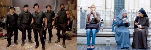 Tonight, as we wait in line for the opening of Stallone’s summer blockbuster, it will be interesting to see the group lining up for the other blockbuster, “Eat Pray Love”.
