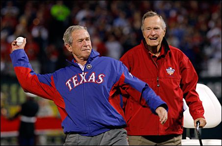 B. The Texas Rangers are George Bush’s team. Poppy Bush was on hand to watch his wretched son throw out the first pitch before Game 4: a game the Giants won 4-0. I’m delighted that the Bush crime family was denied a reason to celebrate – and Dubya got less publicity for his whitewashed, self-serving memoir.