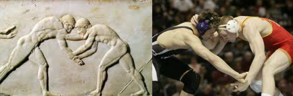The-Ancient-Olympics-2Olympic wrestling has a time-honored place among such revered, historic, millennia-old classical athletic events as marathon running, sprinting, and tossing the javelin and discus. You won’t see beach volleyball or curling pictured on ancient Greek vases, but scenes of grappling wrestlers festoon plates, vases and mosaics throughout ancient Greece: the birthplace of the Olympic Games.