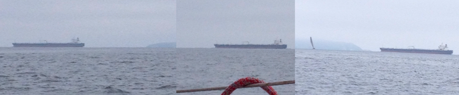 Now, I’ve been in this situation before. It’s hard to gauge how fast these big ships are going from a distance – and small sailing vessels like Misfit must definitely give the big boys a wide berth. In the past, I’ve had the experience of guessing wrong on the big ship’s trajectory and having to heave-to at the last minute, dead in the water, and let the leviathan go by. Such a miscalculation can cripple your chances in a race like this.
