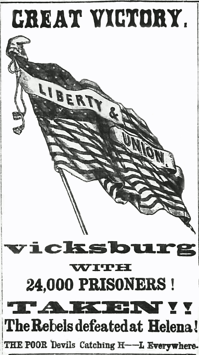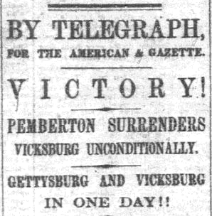 On July 4th, the day after General Meade’s Army won the Battle of Gettysburg, the Confederate stronghold at Vicksburg fell to Union troops under General Grant.