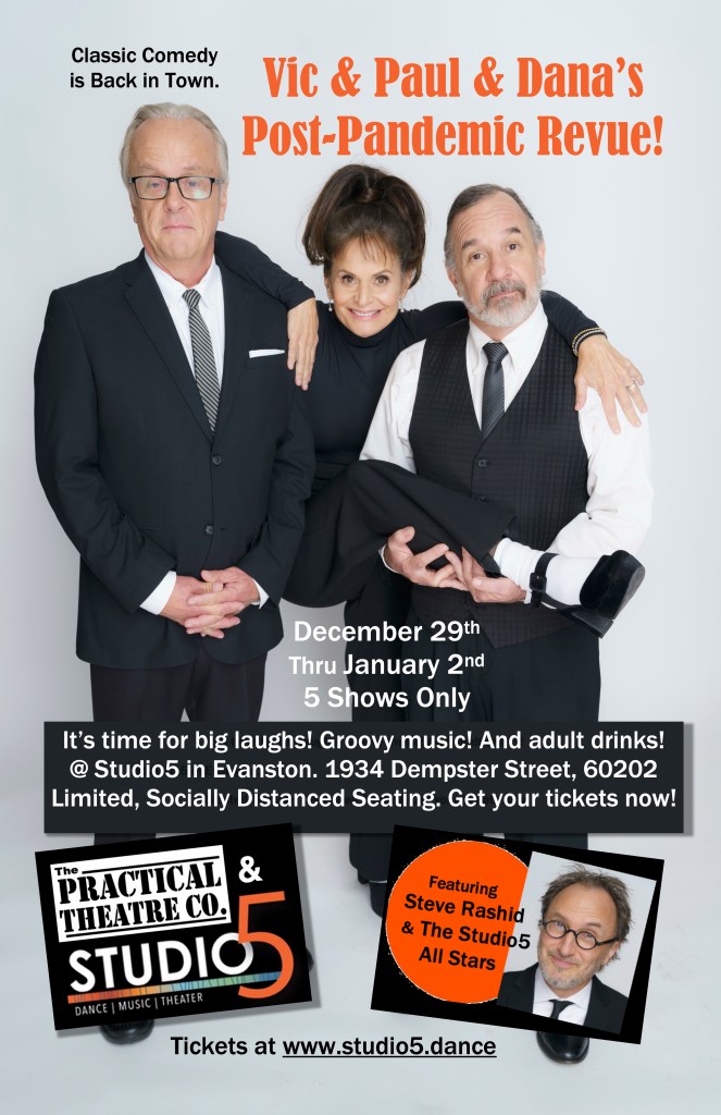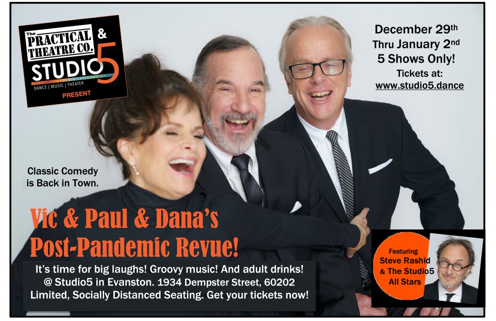 The Practical Theatre returns to the Chicago area with the latest in a series of hit holiday shows, Vic & Paul & Dana’s Post-Pandemic Revue, starring writer-actors Victoria Zielinski, Dana Olsen, and PTC co-founder, Paul Barrosse.