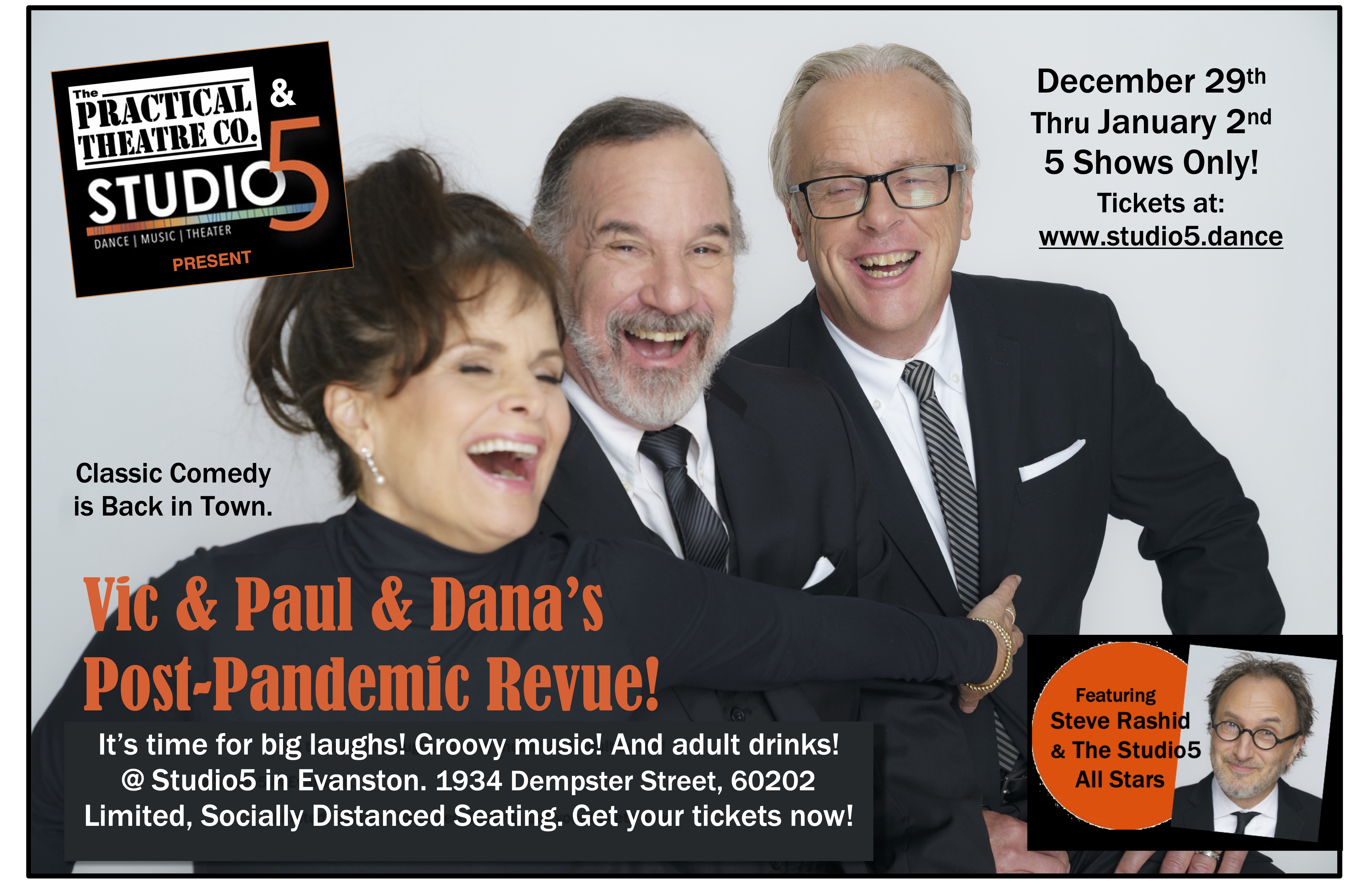 The Practical Theatre returns to the Chicago area with the latest in a series of hit holiday shows, Vic & Paul & Dana’s Post-Pandemic Revue, starring writer-actors Victoria Zielinski, Dana Olsen, and PTC co-founder, Paul Barrosse.