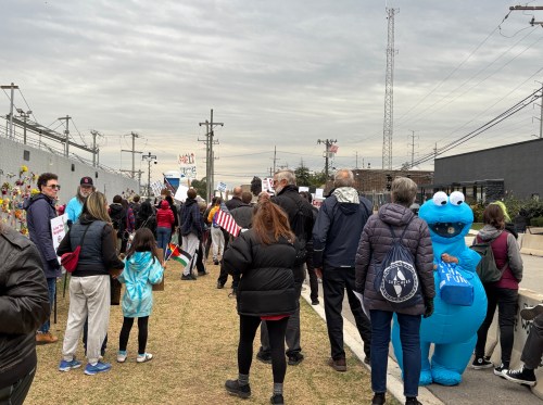 another facility entrance. We could see the ICE vehicles enter and leave – but they didn’t have to drive past us. They didn’t have to look at us. They didn’t have to hear us. They didn’t have to feel our rage. But we expressed ourselves anyway.