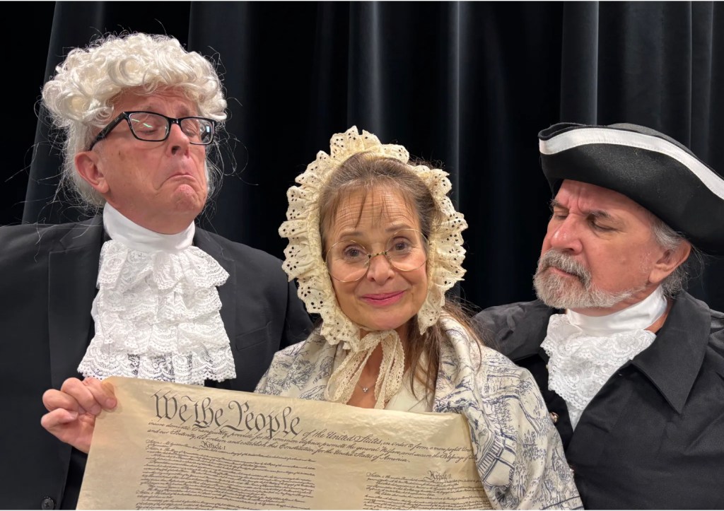 In The Practical Theatre Company’s most recent comedy revue, Quick! Before We’re Cancelled!, we imagined what the brilliant and fearlessly opinionated Abigail Adams might have to say to her husband John and his patriot pal Thomas Jefferson regarding the newly-written Constitution of the United States of America. It’s a sitcom circa 1787 entitled…