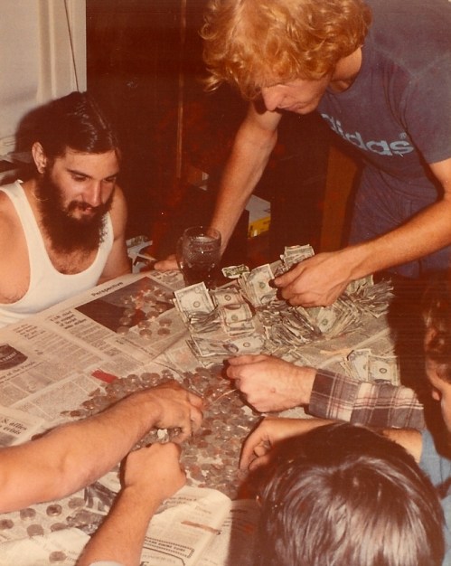 Counting the beggar money, circa 1981.