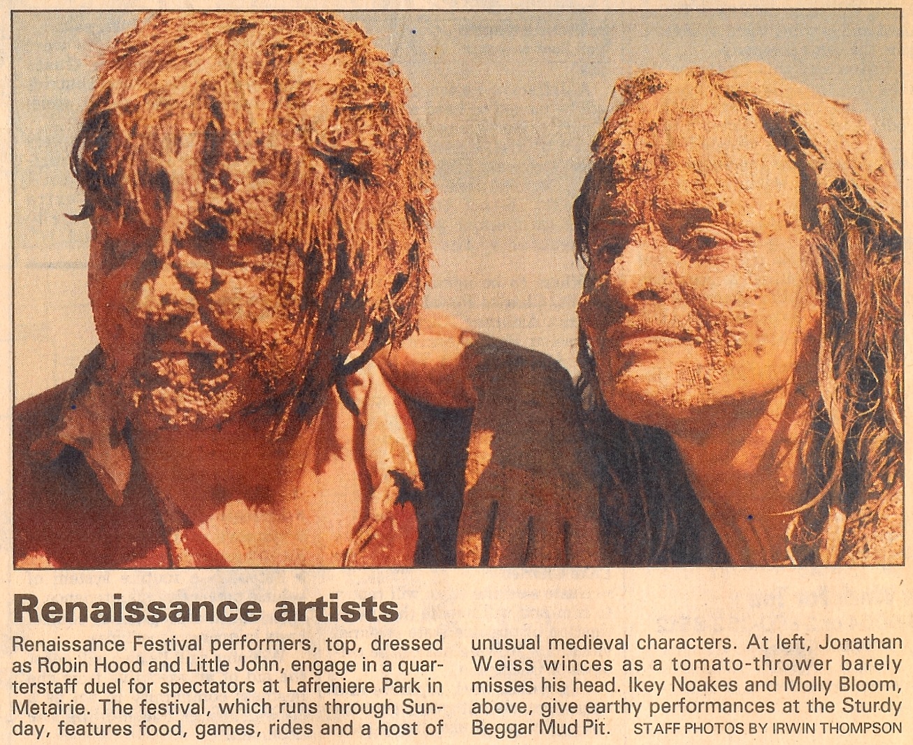 In the summer of 1978, between our Sophomore and Junior years at Northwestern University, I and my two classmates, Herb Metzler and Jamie Baron began performing as beggars at King Richard’s Faire, a Renaissance festival on the border of Illinois and Wisconsin. Today, more than three decades later, our summer job is still alive and well — and The Sturdy Beggars continue to thrill crowds at Renn Fairs across the country with the legendary Sturdy Beggar Mud Show. For more information than you can shake a pit of mud at, click on http://www.mudshow.com