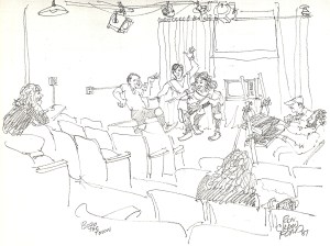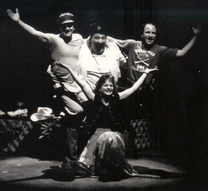 yes you can blame me for nightfall – and joe labritz was associate director on that… “the road meets monty python” indeed… what were we thinking? i remember we pleaded with les hendricks to lend us his special blank hand guns for the play (i remember his disertation was on usage of handguns on the stage) – and the night after opening night, and at about 5 minutes to curtain we discovered that all the hand guns had been stollen. i don’t remember if it was you or brad (or joe?) who came up with the solution (it wasn’t me) but we ran across the street and bought a bunch of toy guns and had the s.m. slam together 2X4s to simulate the gunshots… and it worked better than the blanks – people jumped out of their seats at the “gunshots”… but the hardest part was telling les hendricks that his beloved guns had been stollen. i don’t think he ever quite forgave us for that.