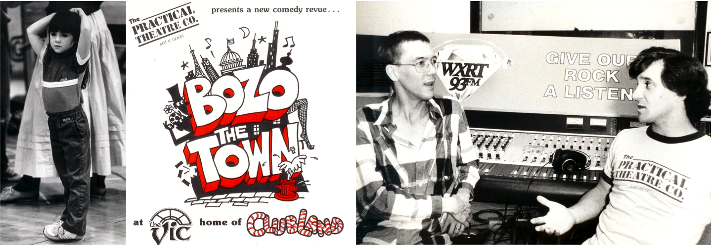 In the winter of 1987, Victoria and I were determined to mount a new PTC comedy revue – and along with board member Drew McCoy, we convinced our friends at The Chicago Theatre to back another show to be staged at the (by now aptly-named) Vic Theatre. We teamed with another fellow NU alum (and Vic’s high school classmate at Luther South High School) Kyle Hefner on a show we called Bozo the Town. Steve Rashid once again provided musical direction and limitless keyboard skills.