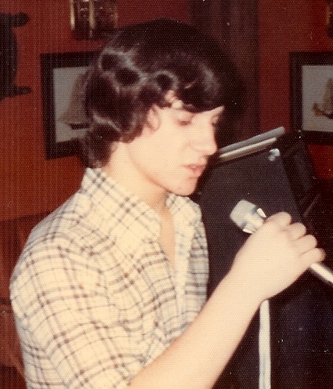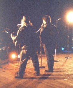 Sharing a mic with Brad a few years after graduation, still working that Lennon-McCartney thing.