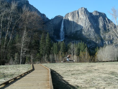 Luckily, the travel gods smiled upon me, and I was among the last shuttle load of passengers to board our tiny American Eagle jet to Fresno, landing at 7:30 pm. By 8:30, I was behind the wheel of a rented Jeep (with 4-wheel drive so I wouldn’t have to worry about using chains in the possibly snow-covered mountain roads) and on my way up Route 41. I made Yosemite’s south entrance by 9:45 – and the moonlight hinted at the natural wonders I was passing on my way down to the valley floor.