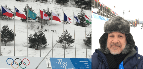 Here’s the halfpipe. If Shaun’s on today – he’s going to write the greatest chapter in the history of Olympic snowboarding in that pipe. Or, maybe he won’t. After all, he finished fourth at Sochi in 2014, just missing the medal podium.Flags