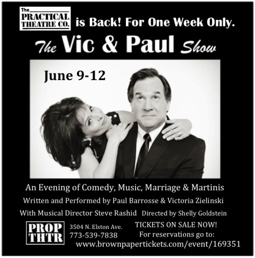 After a 22-year absence from the Chicago area stage, Paul Barrosse and Victoria Zielinski, both veterans of The Practical Theatre’s hit comedy revues in the 1980’s, will perform in “The Vic & Paul Show”, an original two-person comedy revue with music that will play June 9-12 at The Prop Theatre.