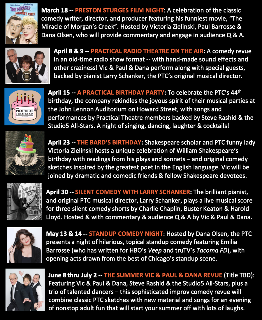 Tagged as cabaret, comedy, Dana Olsen, Evanston, improvisational comedy, Larry Schanker, Paul Barrosse, Paul Marinaro, Steve Rashid, The Practical Theatre, Victoria Zielinski