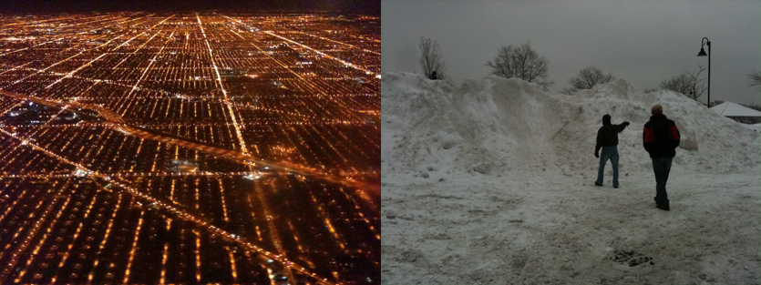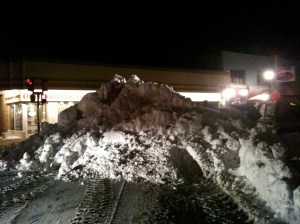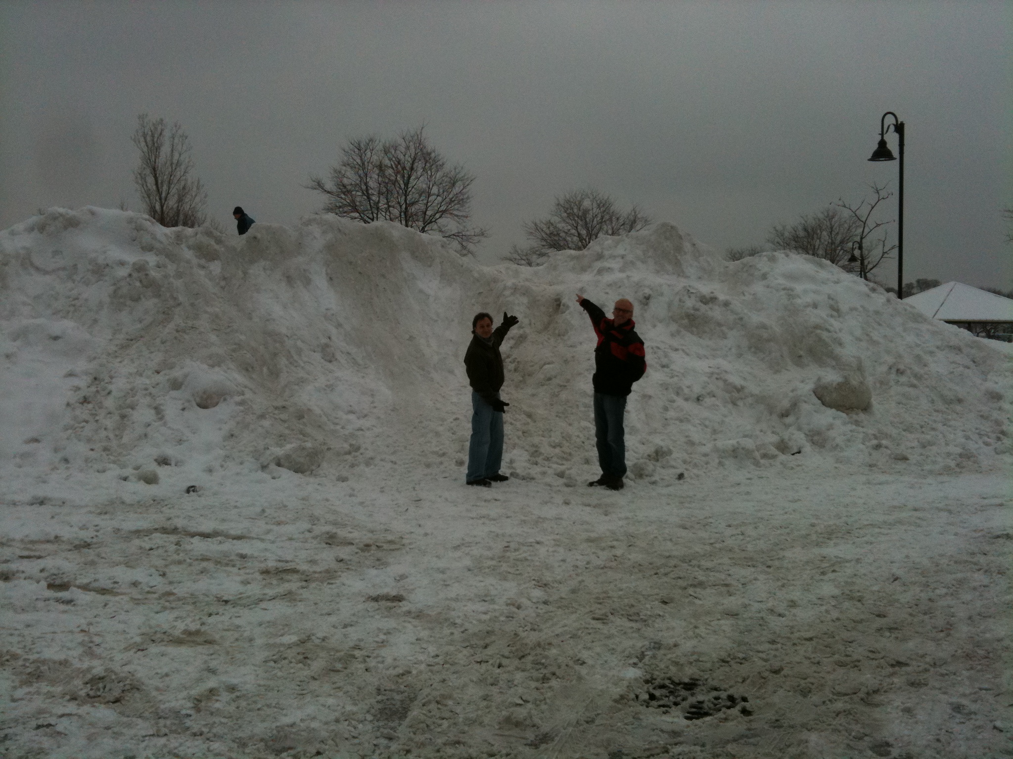 And BTW – these are not rolling hills dusted with snow. This is a flat parking lot on which they just dumped these man-made mountains of snow. The Evanston kids were loving it! King of the hill!