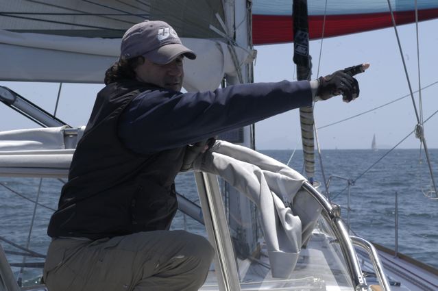 Eric is at the helm as we approach the finish line. At this point, it was hard to tell how we’d finished. There weren’t many boats ahead of us – and a half-dozen could be seen behind us. Hope springs eternal.