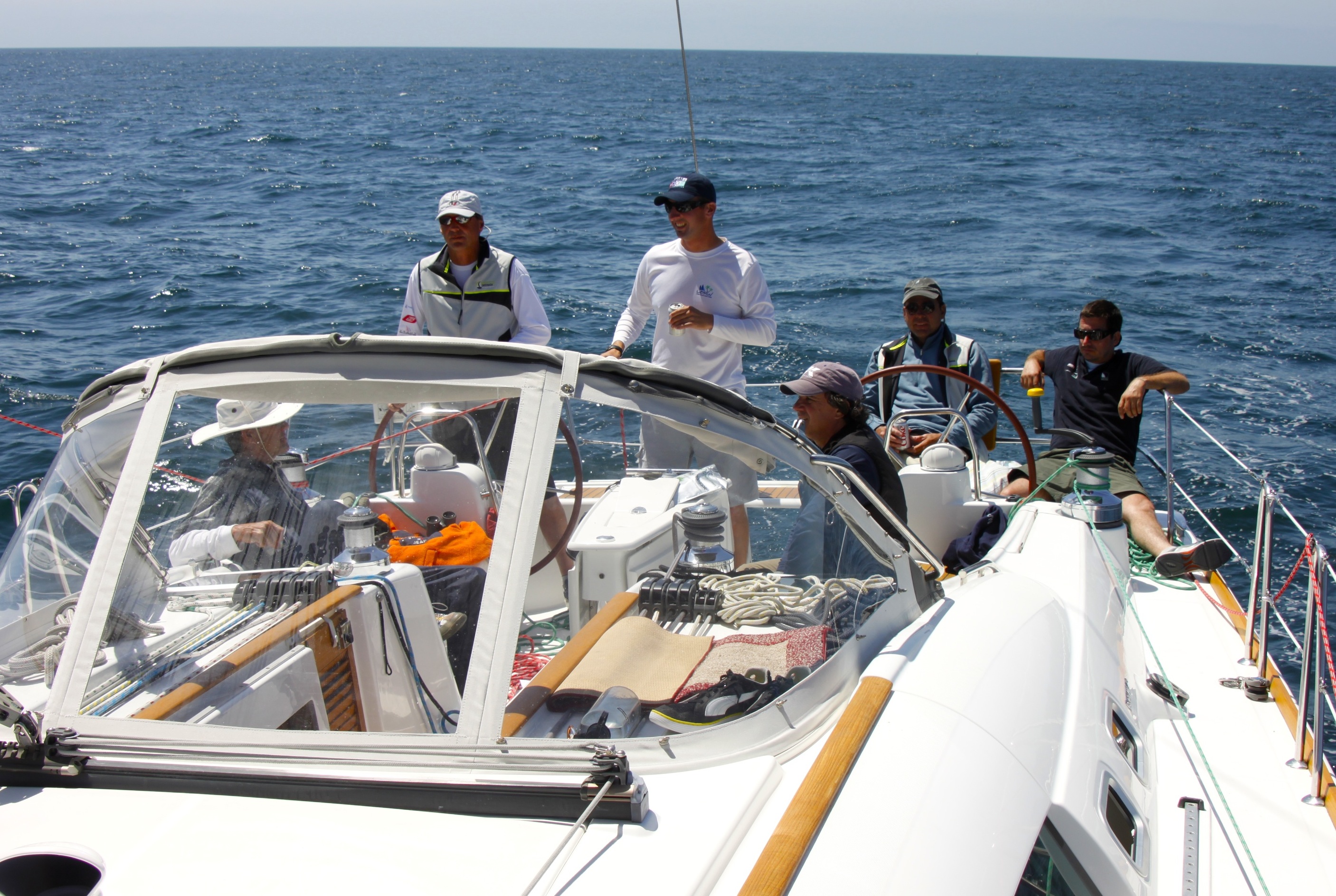 As Misfit pulls out of its berth at the Bahia Corinthian Yacht Club and sails out of Newport Harbor, Eric checks in with the race committee boat. “Sail number 35010 checking in!”
