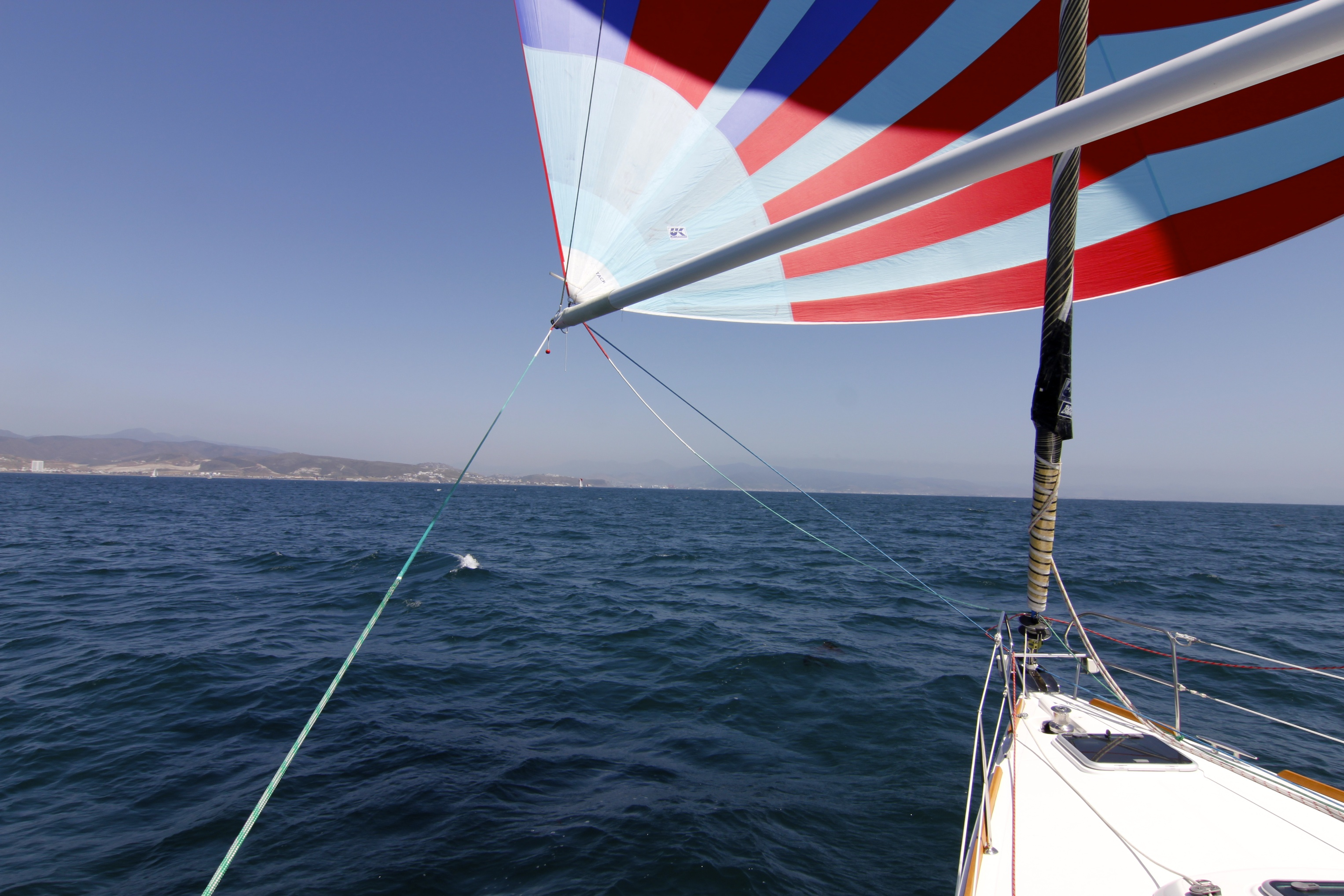 The Matey scans the Mexican shoreline as Misfit sails toward the finish line, coming into Ensenada.