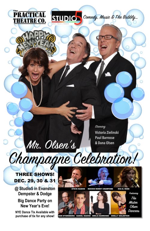There are now just three weeks left to reserve your seats for Mr. Olsen’s Champagne Celebration at Studio5 in Evanston. Tickets are going fast for the funniest and most fun New Year’s party on Chicago’s North Shore.