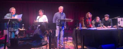 The highlight of our Beverly Arts Center experience were the visits from good friends who traveled many miles to see the show and share some laughs with us: the brilliant pianist and composer Larry Schanker and his wife Jenny, our great friend Bubba George McClellan who made the long drive in from Fort Wayne, and my Rockme Foundation band mates Casey Fox and Rush Pearson, who brightened the BAC scene with their better halves.