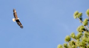 As we made our way back to Steve’s dock, I was watching an eagle soaring above the lake not far from our boat, just as I’d watched dozens of eagles circling in the sky in the past three days.