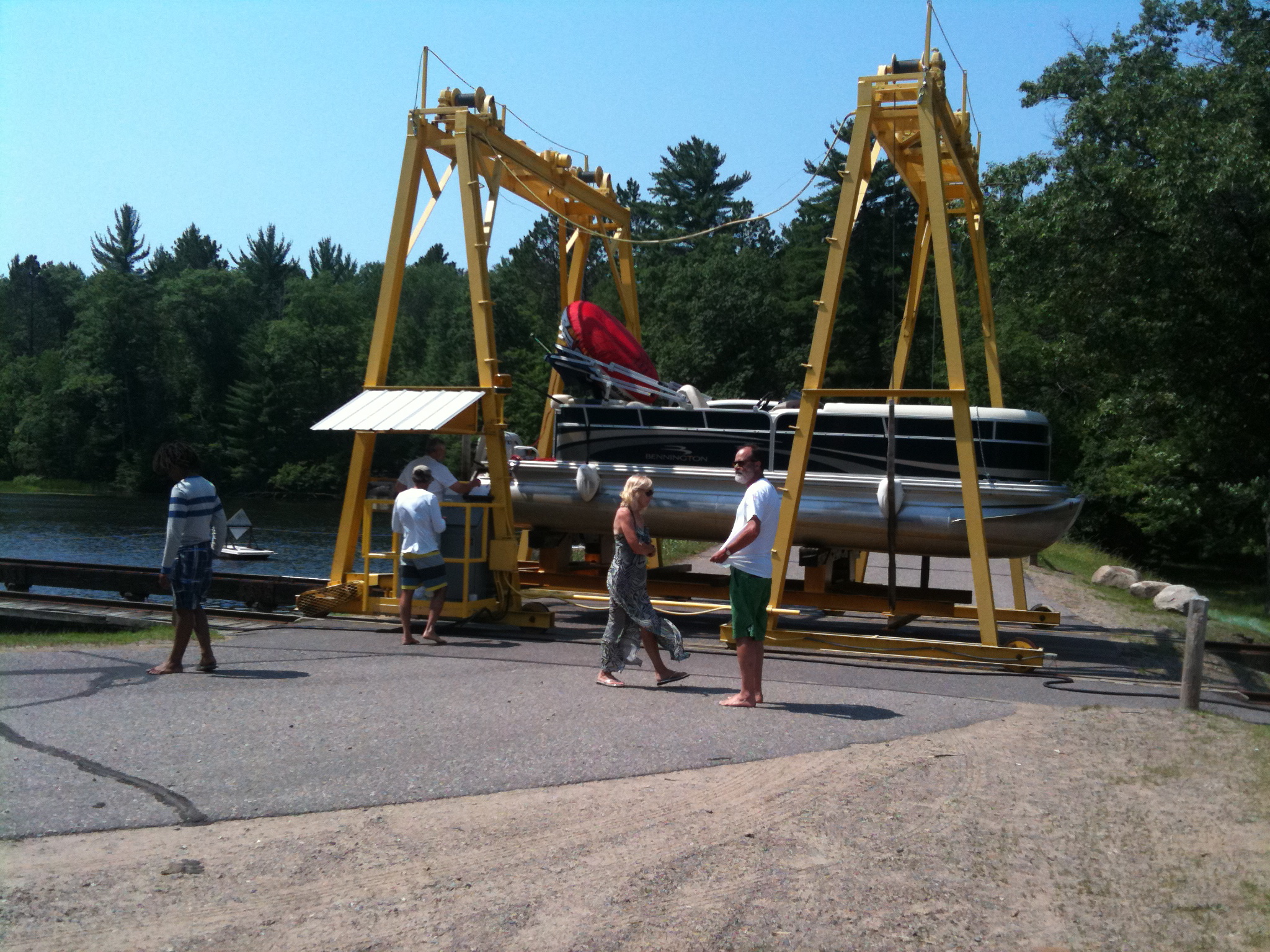 The Camp Stroud crew in front of our pontoon boat on the boat lift. (Don’t blame Steve for this photo, taken by the lift operator.)