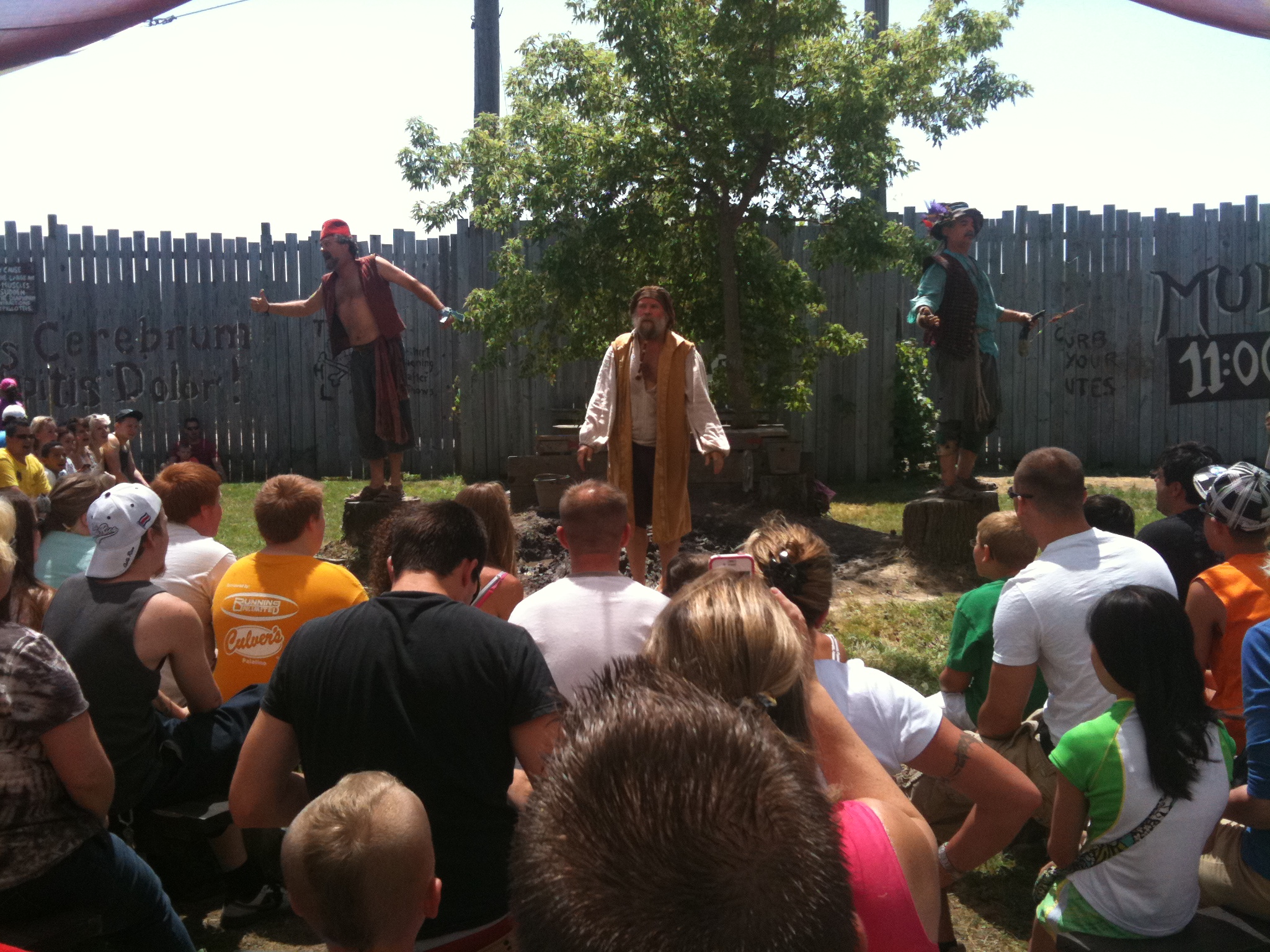 On Sunday, July 8th, the day before we left for Cleveland, Vic and I drove to the Illinois-Wisconsin border to see The Sturdy Beggars perform The Mud Show at The Bristol Renaissance Faire. It’s been many, many years since Victoria and I cavorted in the mud as Sturdy Beggars, and we were delighted to be back at the mud pit to watch our good friends Rush Pearson, Herb Metzler and John Goodrich perform “The Greatest Show In Earth”.