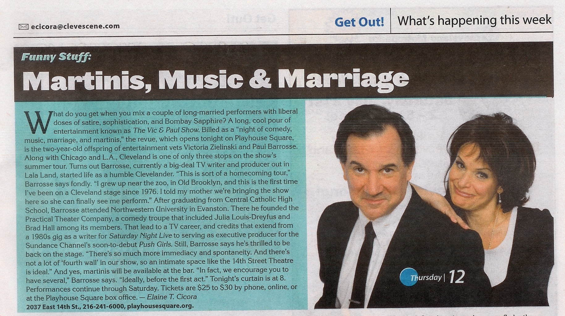 This Cleveland stage of my summer sabbatical was particularly important. After two decades of making television shows that entertained a remote audience whose response to my work I could only imagine – taking “The Vic & Paul Show” to Cleveland was an opportunity to reconnect with live audiences in a town far away from Hollywood and many miles removed from Chicago, where The Practical Theatre Company made some history and earned a reputation that lingers today.